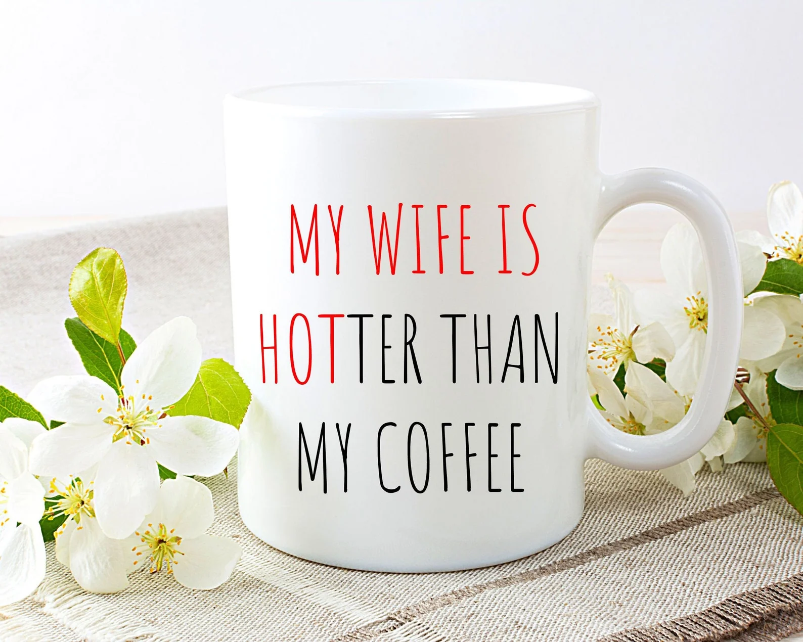 My wife is hotter than my coffee mug! These make great birthday gifts for him, anniversary gifts for your husband, and more!