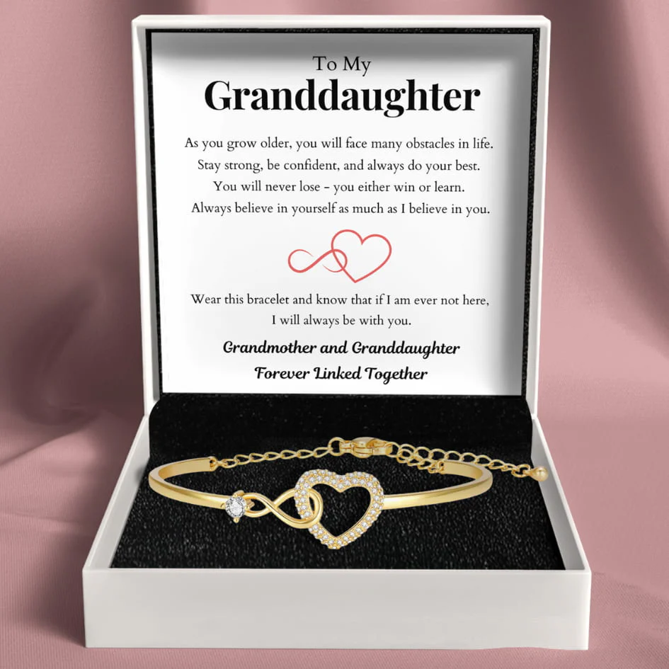 Surprise your granddaughter with this meaningful Infinity Heart Bracelet. Give her a symbol of everlasting love and devotion, a timeless piece that speaks volumes without saying a word.